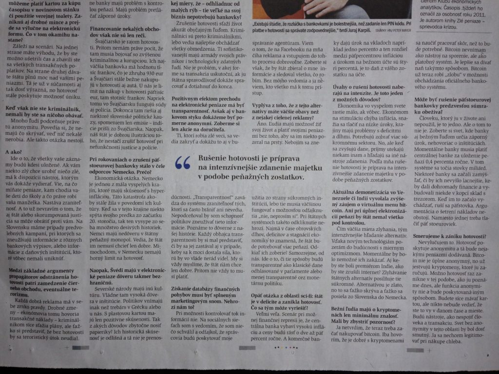 Vojna proti hotovosti je globálna. K téme som mal rozhovor v stredajších Hospodárskych novinách.