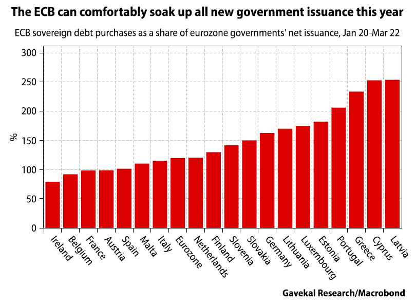 ECB prefinancuje vytlačením nových eur 120 % predpokladaných deficitov členských krajín eurozóny.